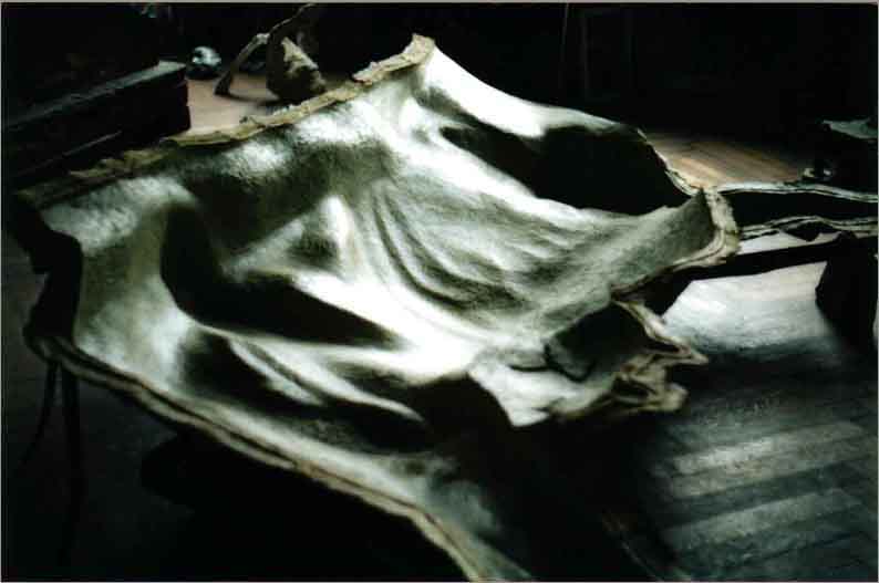 Eines der beiden Hauptteile der Negativform vorbereitet zur mehrlagigen Ausformung.